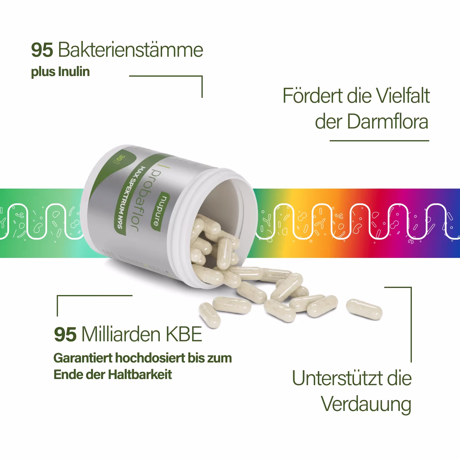 Super, dass du deine Darmgesundheit in die Hand nimmst. Nupure's Probaflor ist der richtige Schritt.