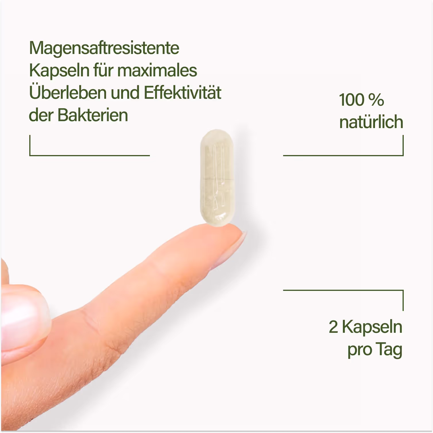 - Magensaftresistenten Kapseln für maximales Überleben und Effektivität der Bakterien